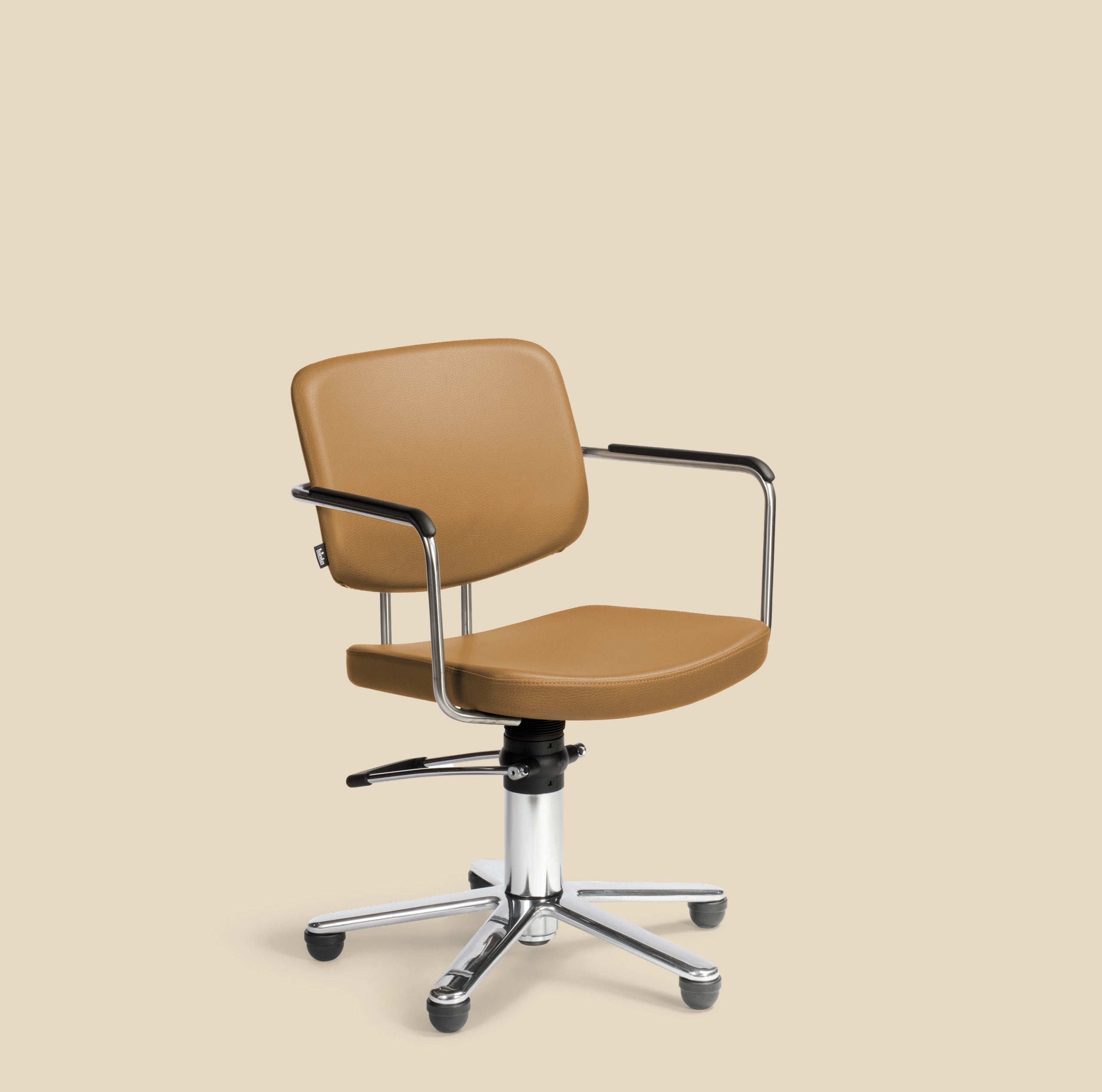 Chloe Tan - Brown hairdressing chair - Black round base